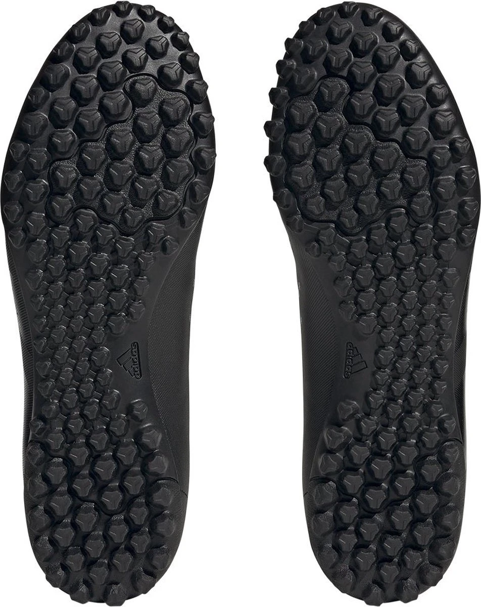 Daaronder houdt een rubberen buitenzool met noppen je stabiel en in controle op kunstgras.