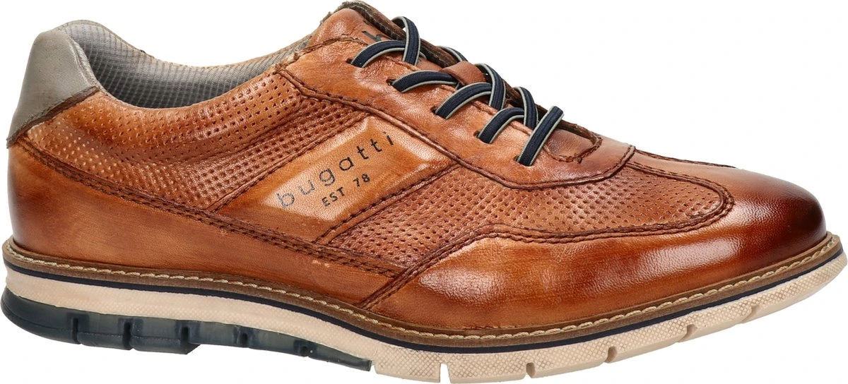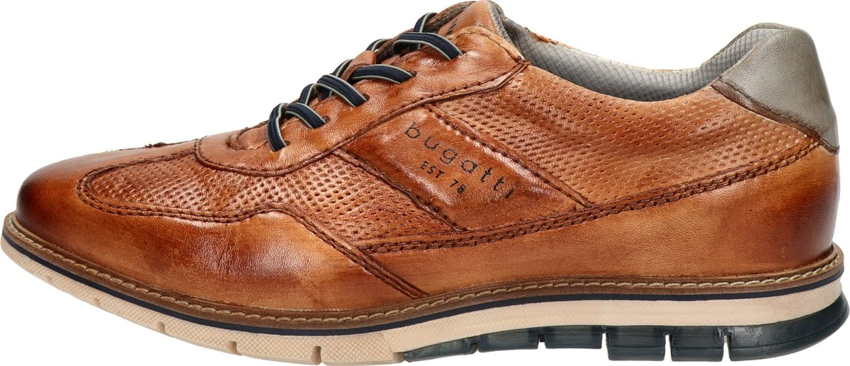 Bugatti heren sneaker. Stijlvolle en sportieve sneaker voor elke gelegenheid. De sneaker is uitgevoerd in leer, waardoor de sneaker erg stevig is. De binnenkant van de sneaker is van textiel. Ook het voetbed is van textiel en is uitneembaar. De rubberen loopzool heeft een licht profiel.