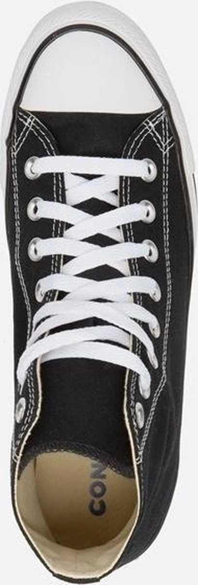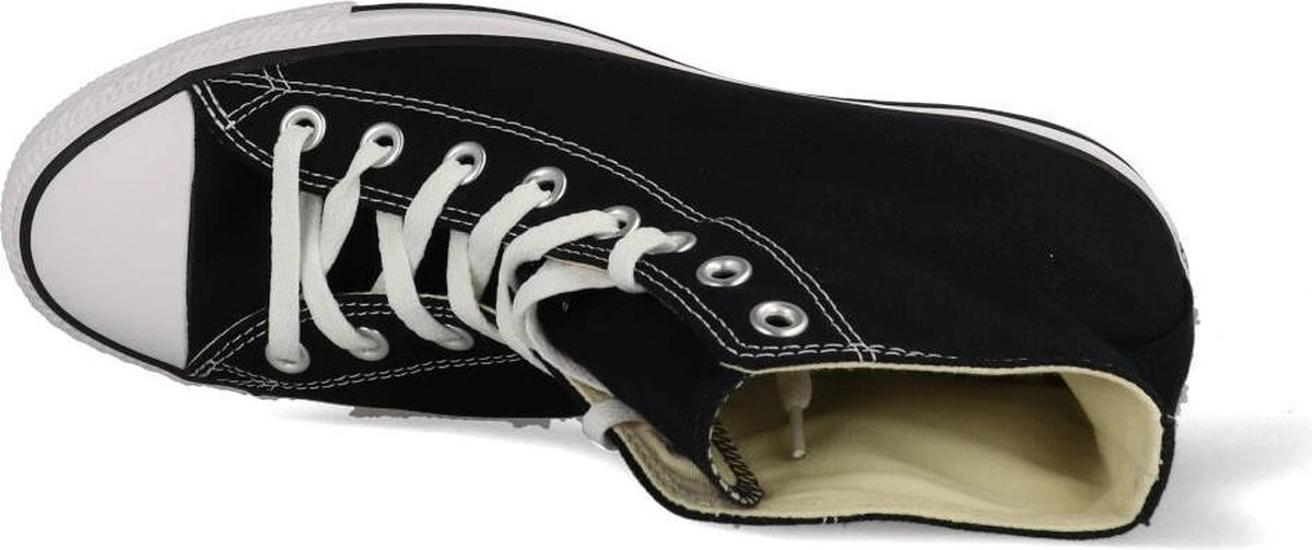 Deze iconische Converse Chuck Taylor All star OX High Top sneakers zijn ideaal voor het voorjaar en de zomer! De schoenen zijn gemaakt van luchtig canvas en hebben een voering en binnenzool van textiel. De zwarte sneakers zijn uitgevoerd in het hoge model dat boven de enkel valt. De sneakers zijn voorzien van merkopdrukken, stiksels en een zwarte lijn over de rubberen zool die een dikte heeft van 2 centimeter. Door middel van veters zijn de sneakers te sluiten. Dit klassieke model kan je met iedere look en stijl combineren. Dit maakt het een veelzijdige sneaker die ideaal is voor alledaags gebruik. De zwarte Converse Chuck Taylor All Star OX High Top sneakers hebben een vast voetbed.