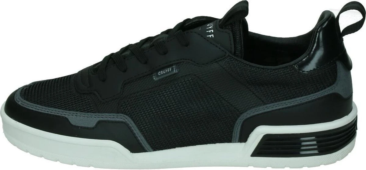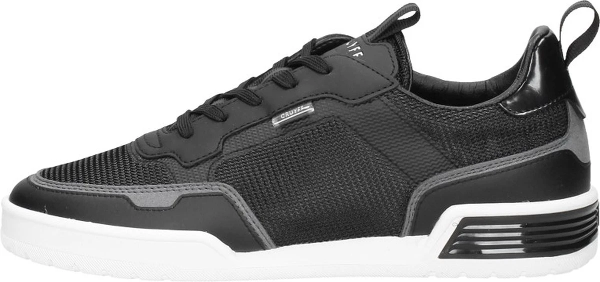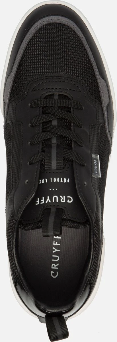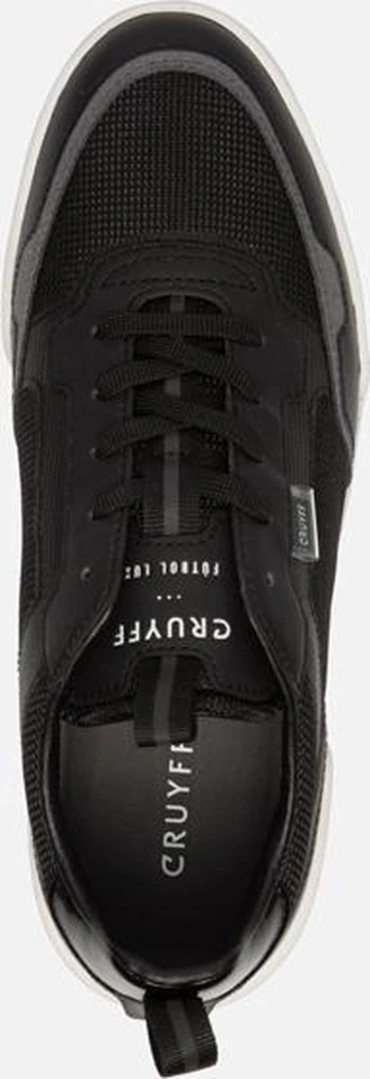 De zwarte Cruyff Calcio sneakers hebben een minimalistisch en strak uiterlijk, waardoor je ze makkelijk kan combineren. De schoenen hebben een bovenwerk van imitatieleer en textiel met een subtiele textuur. De voering en binnenzool zijn gemaakt van textiel voor een comfortabel en zacht gevoel. Met de veters pas je de pasvorm aan naar wens voor een goede fit. Dit model heeft een rubberen zool en een stevige hiel stabilisator. De zwarte Cruyff Calcio sneakers hebben een uitneembaar voetbed.