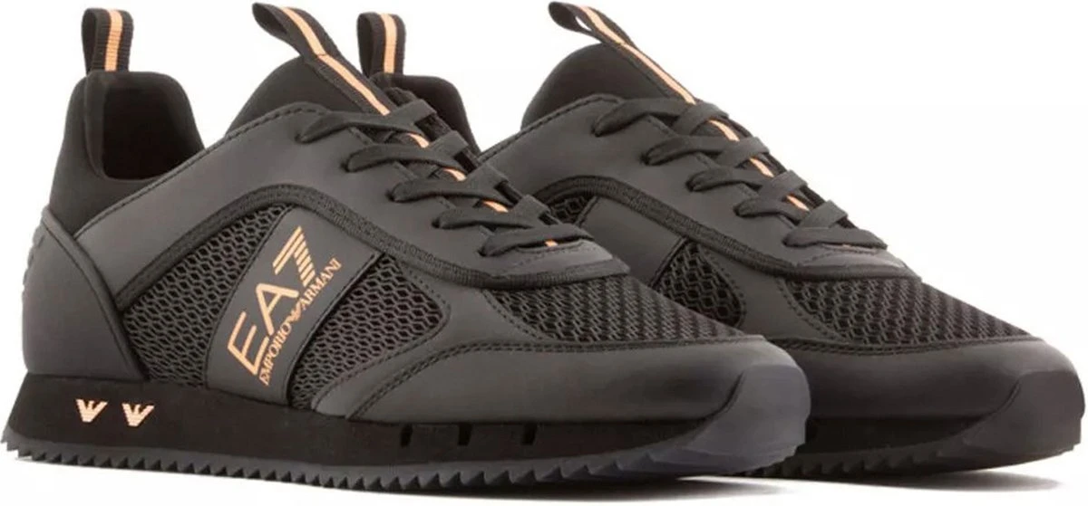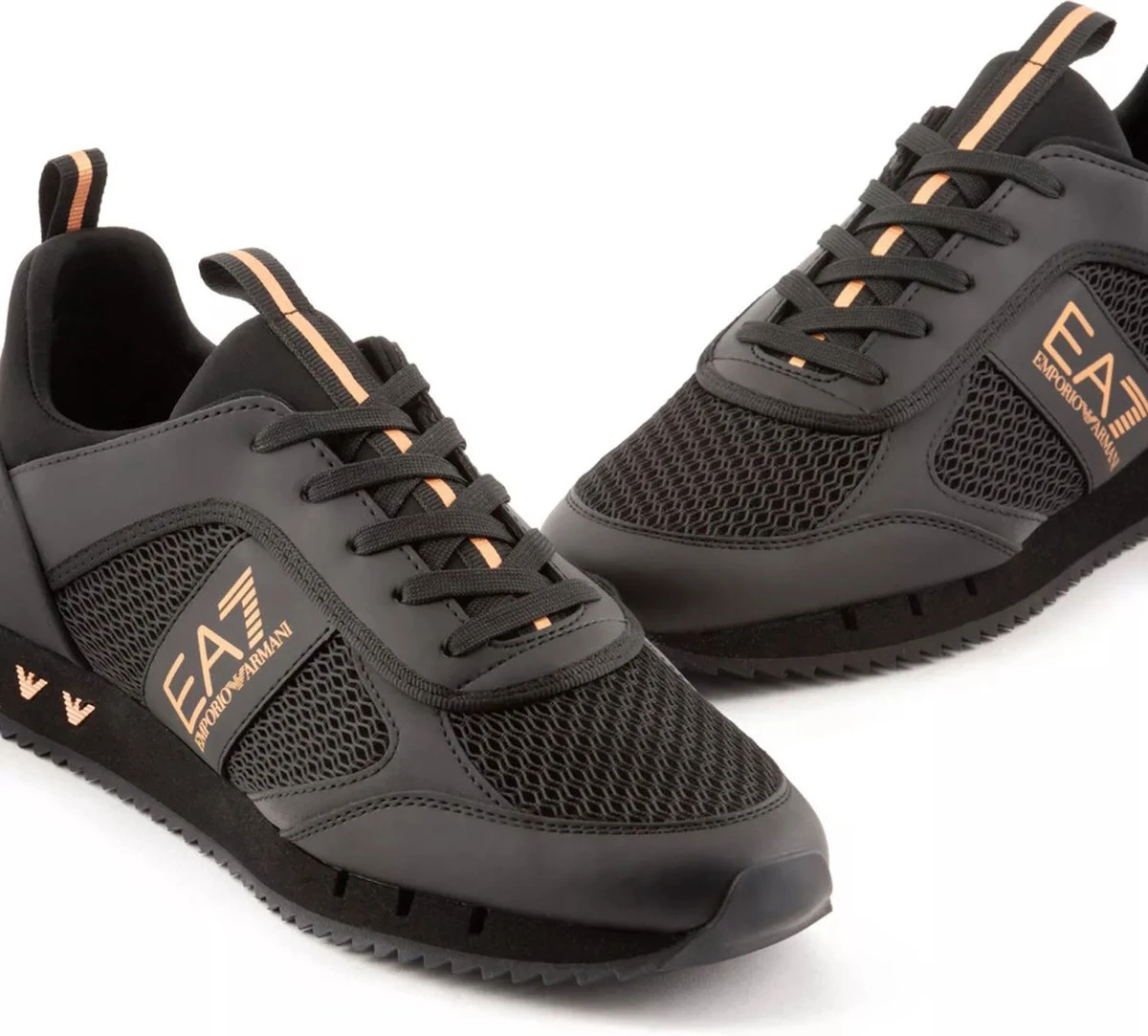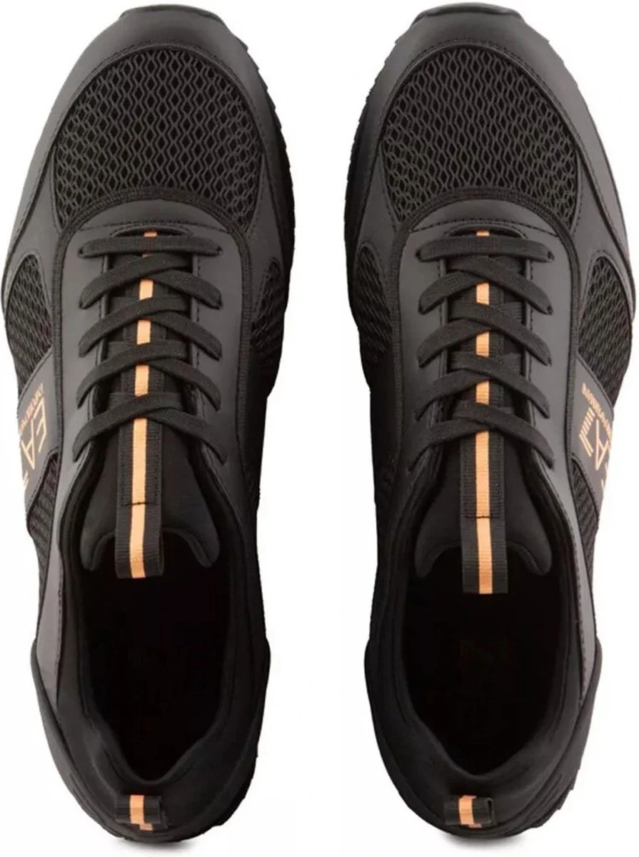 Specificaties: Pasvorm: normale pasvorm/ vetersluiting/ handige lussen aan de voor- en achterkant voor gemakkelijk aan- en uittrekken Bovenwerk: synthetisch materiaal en textiel (mesh) Buitenzool: rubberen buitenzool Kleur: zwart – (oranje) goud Materiaal: synthetisch materiaal – textiel – rubber