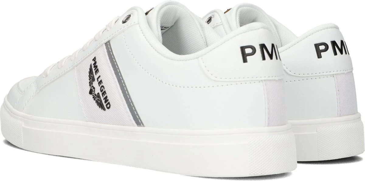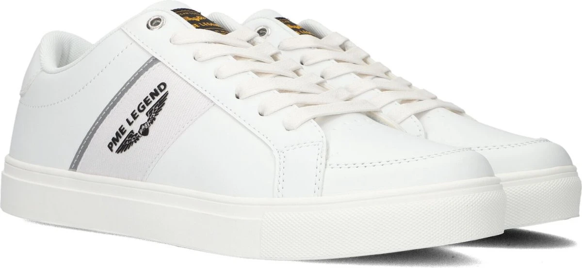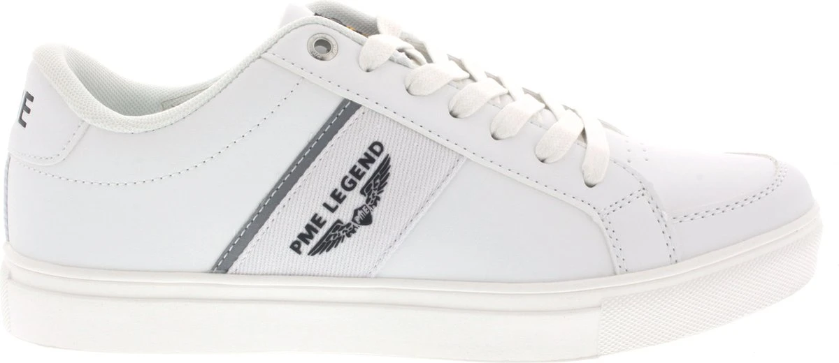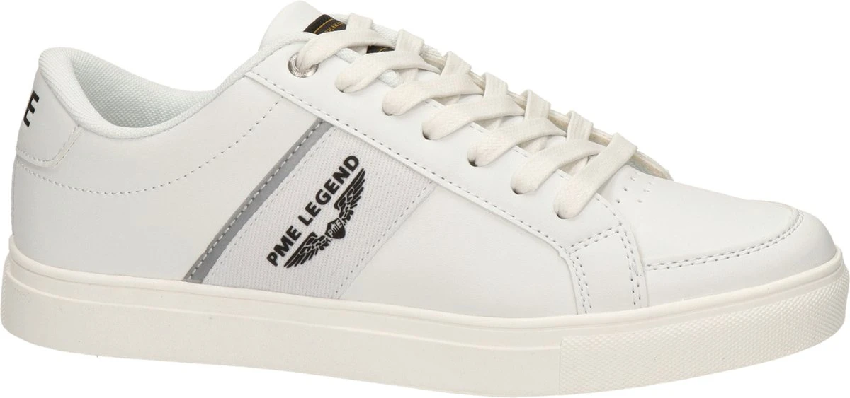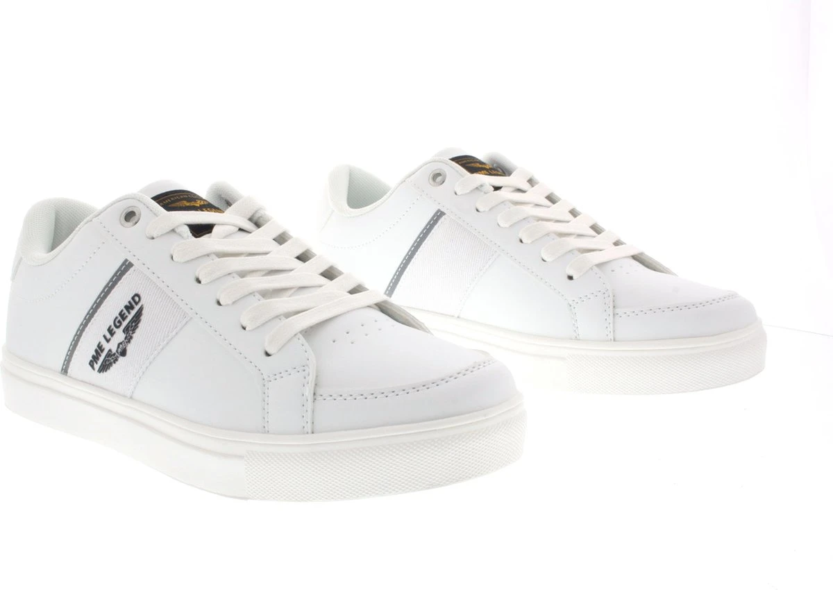 PME Legend sneaker voor heren, artikel Eclipse in het wit leatherlook. De sneaker is licht van gewicht en voorzien van een fraai logo. PME Legend herenschoenenen zijn eigentijds met een knipoog naar de Nederlandse man. De pasvorm valt normaal.