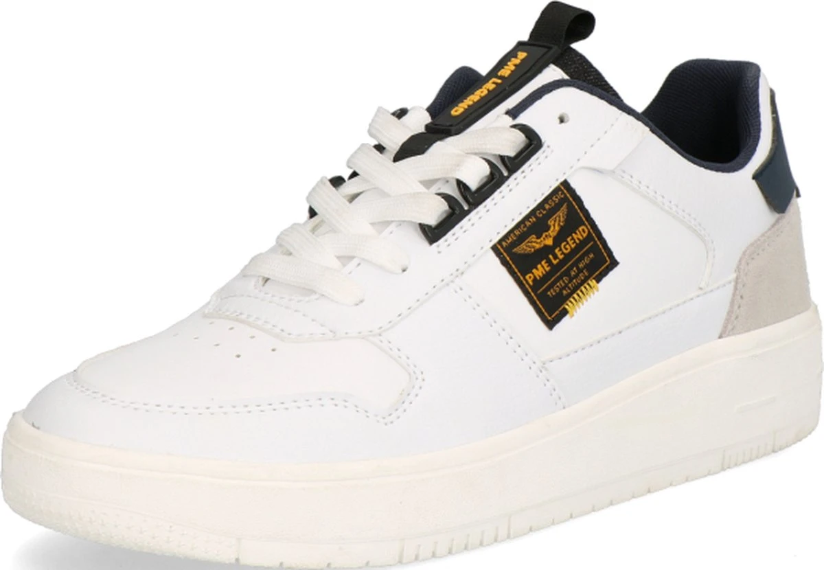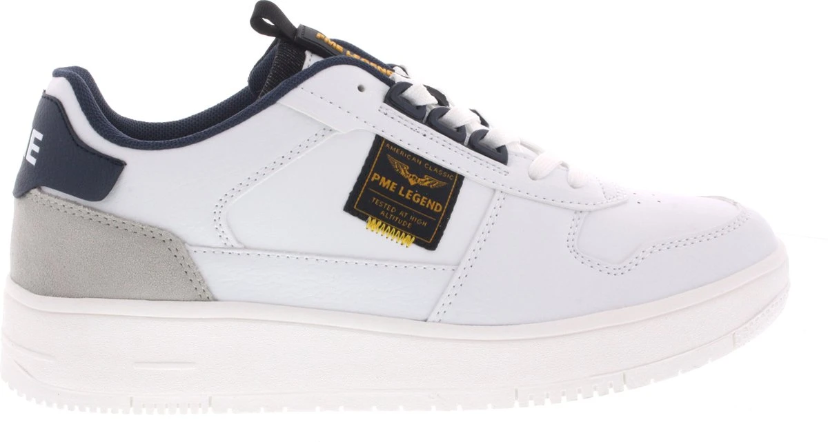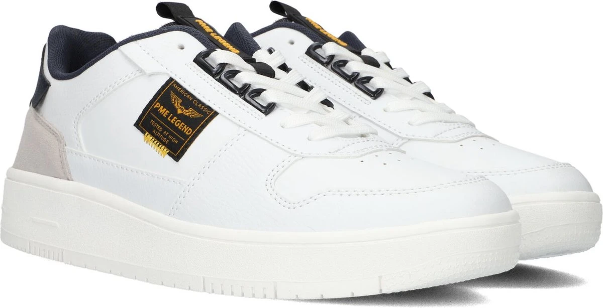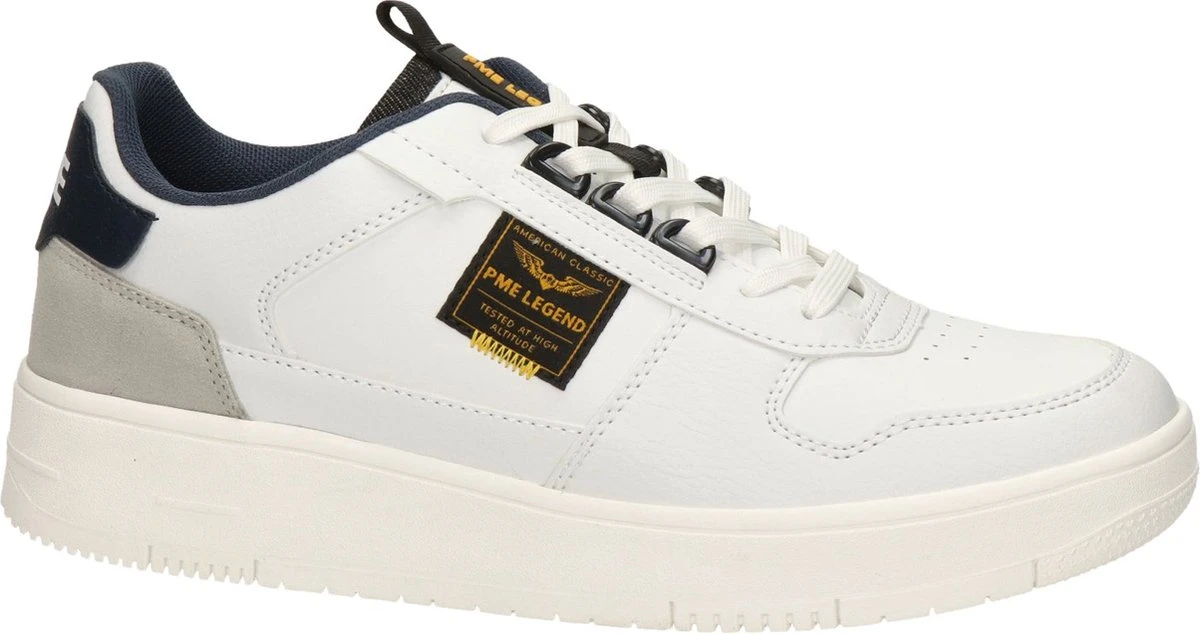 PME Legend sneaker voor heren, artikel Gobbler in het wit leer. De sneaker is licht van gewicht en voorzien van een fraai logo. PME Legend herenschoenenen zijn eigentijds met een knipoog naar de Nederlandse man. De pasvorm valt normaal.