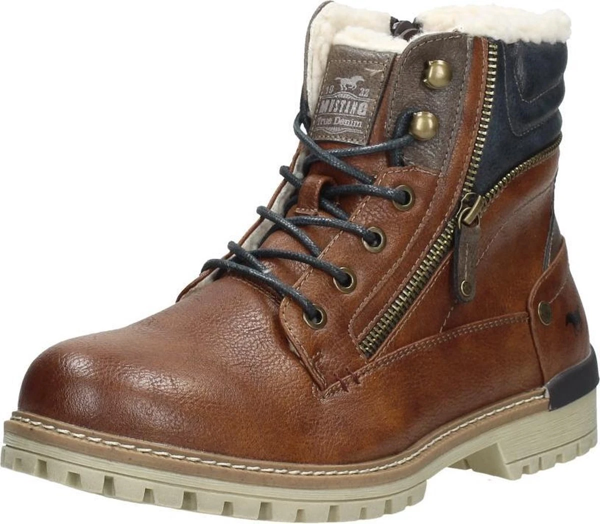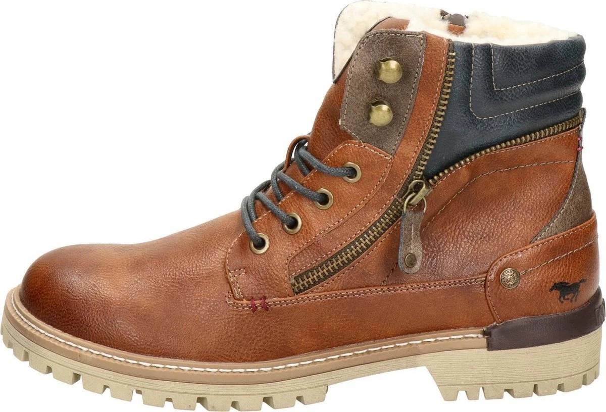 Mustang heren veterboot. Een warme comfortabele boot voor het komende seizoen! De buitenzijde is uitgevoerd in imitatieleer. De binnenzijde is voorzien van een warme voering van fake fur. Deze boot is voorzien van een voetbed gemaakt van fake fur. Door de rits aan de zijkant is deze schoen gemakkelijk aan- en uit te trekken.