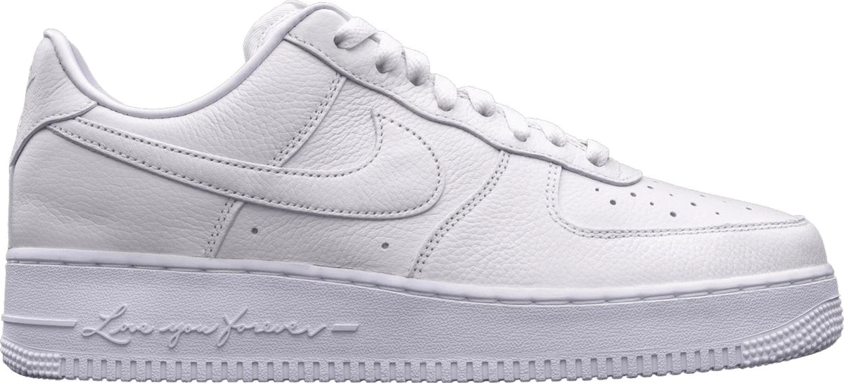 The Air Force 1 Low Drake NOCTA Certified Lover Boy is a limited edition shoe from Nike. It features a white leather upper with black and red accents, a white rubber sole, and the classic Air Force 1 silhouette. The shoe also features the NOCTA logo, a brand collaboration between Drake and Nike, on the heel and Certified Lover Boy text on the insole. This shoe is considered a highly sought-after item among sneaker collectors.
