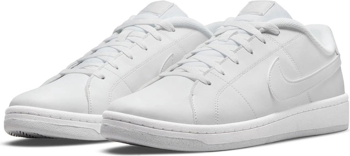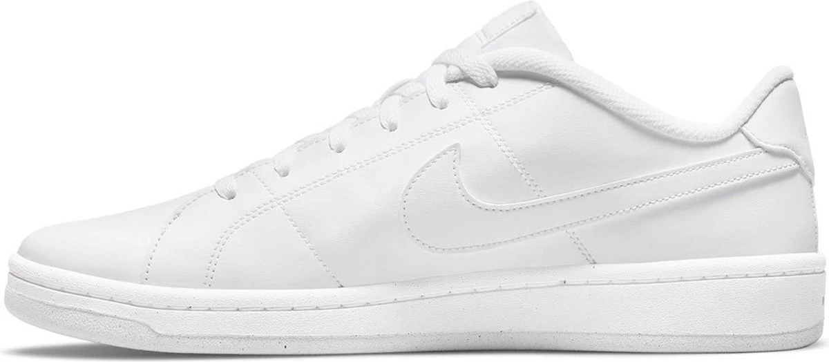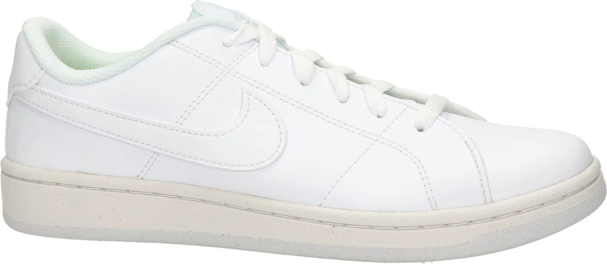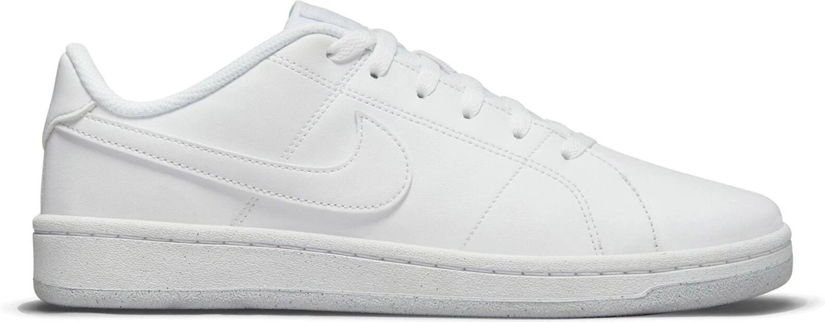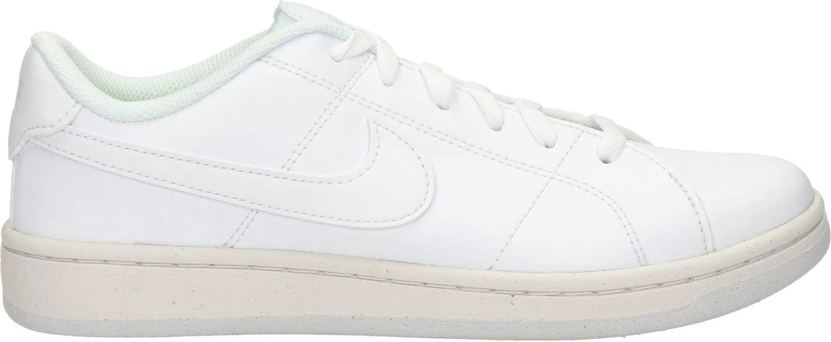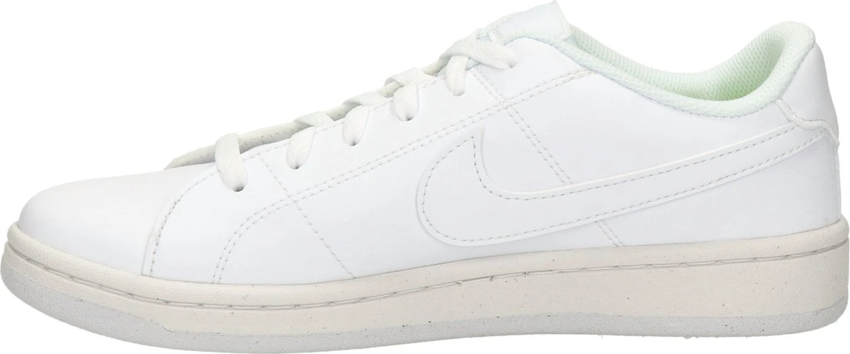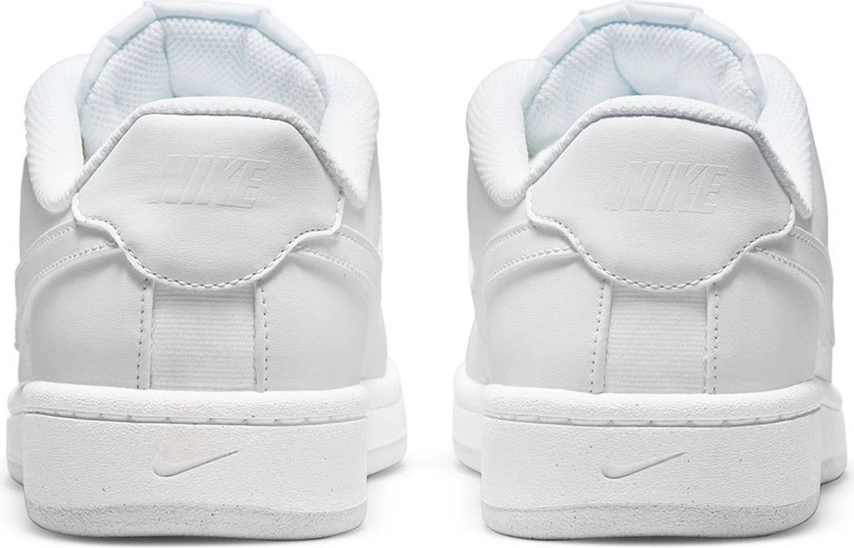 De Nike Court Royale 2 heeft hetzelfde ontwerp dat al sinds de late jaren 70 door de straten loopt en werkt het bij met diervrij leer en gerecyclede materialen.
