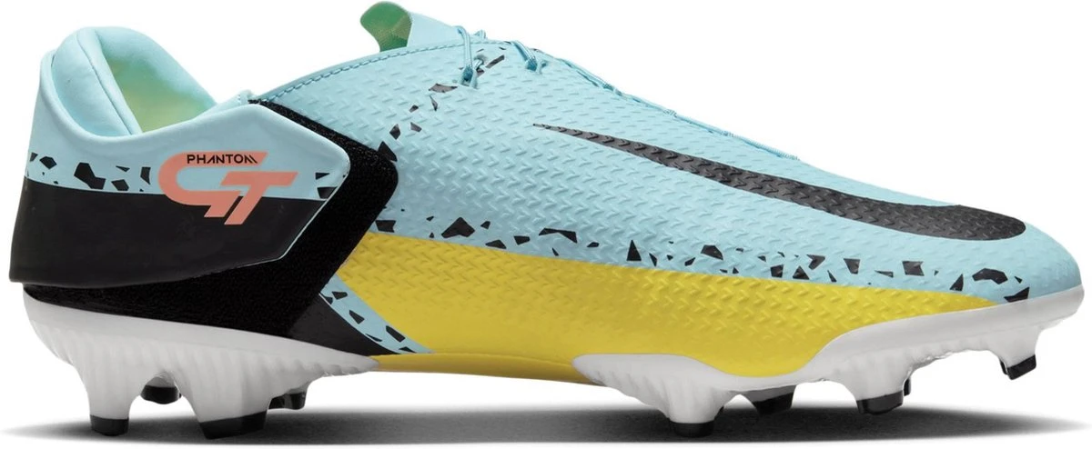 Specificaties: Pasvorm: aansluitende pasvorm/ klittenbandsluiting Bovenwerk: bovenwerk met textuur geeft je grip voor betere balcontrole Zooltype: FG/MG noppen voor gebruik normale- en kunstgrasvelden Kleur: licht blauw – geel – zwart – oranje Materiaal: synthetisch materiaal – textiel – PU