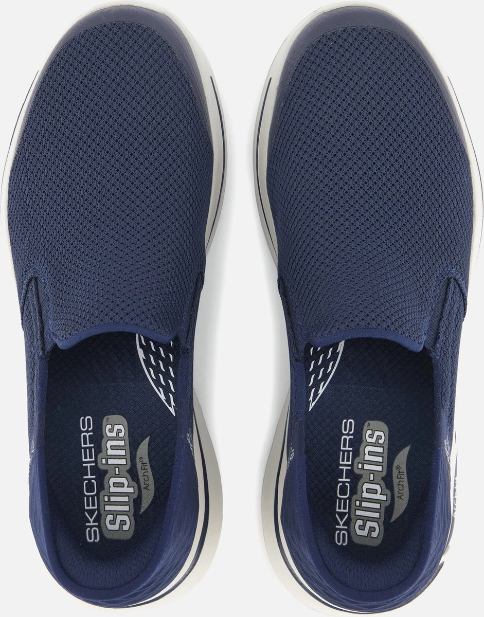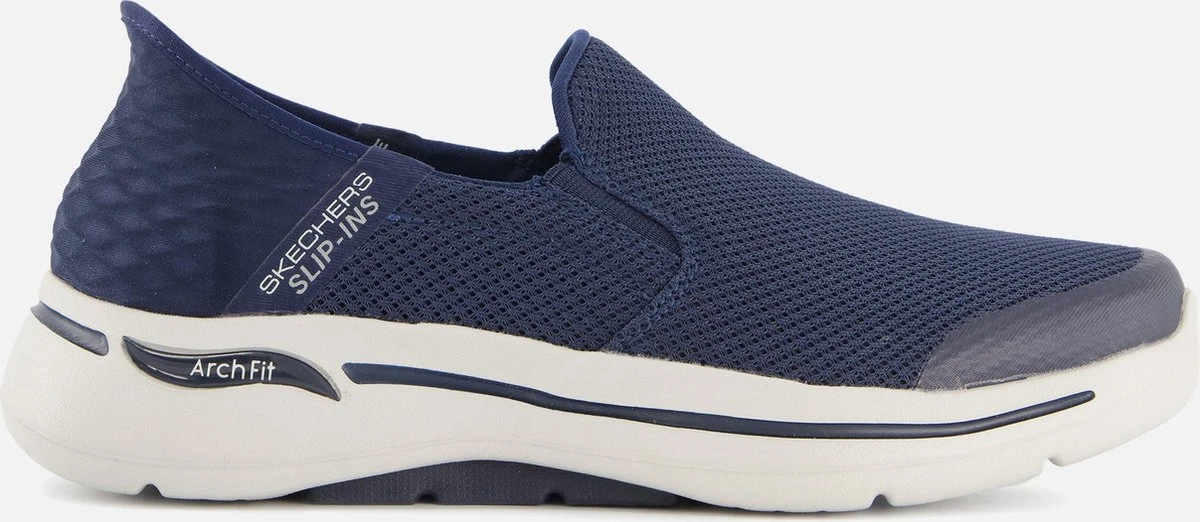 Deze comfortabele Skechers Hands Free Slip-ins zijn voorzien van de Stretch Fit technologie waardoor je gemakkelijk in de schoen stap. De versteviging in de hak zorgt ervoor dat je niet hoeft te bukken bij het aan- en uittrekken. Extra fijn is de Heel Pillow technologie waardoor het rondom de hak extra zacht aanvoelt. Het Air-Cooled Memory Foam voetbed zorgt voor demping bij iedere stap. Wil jij comfortabele schoenen waar je urenlang op kunt lopen? Dan zijn de Skechers hands Free Slip-ins perfect voor jou!Deze Skechers Go Walk Arch Fit Hands Free instappers in de kleur blauw zijn gemaakt van textiel. De voering en comfortabele binnenzool zijn ook van textiel. De zool is gemaakt van rubber en heeft een dikte van 2 centimeter.