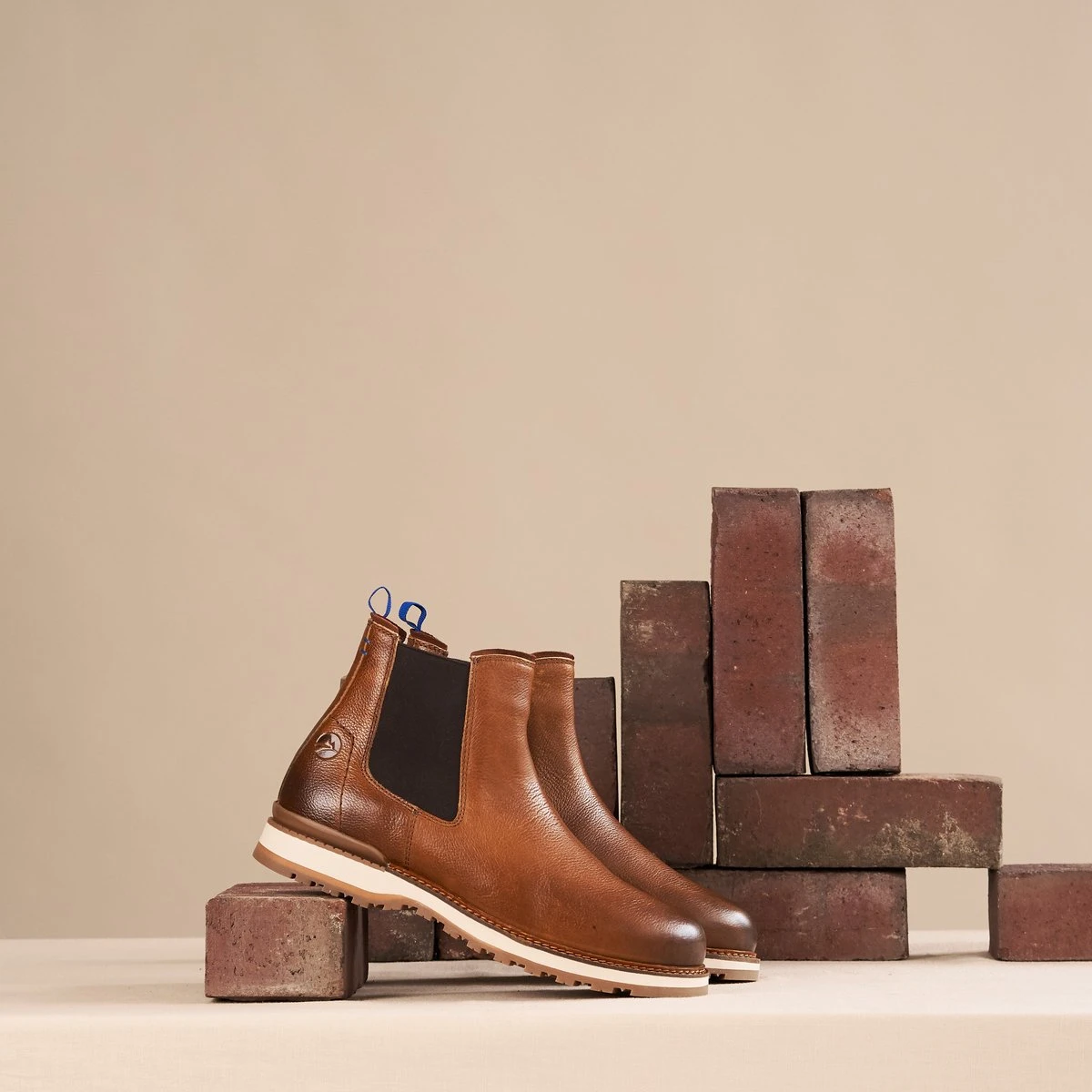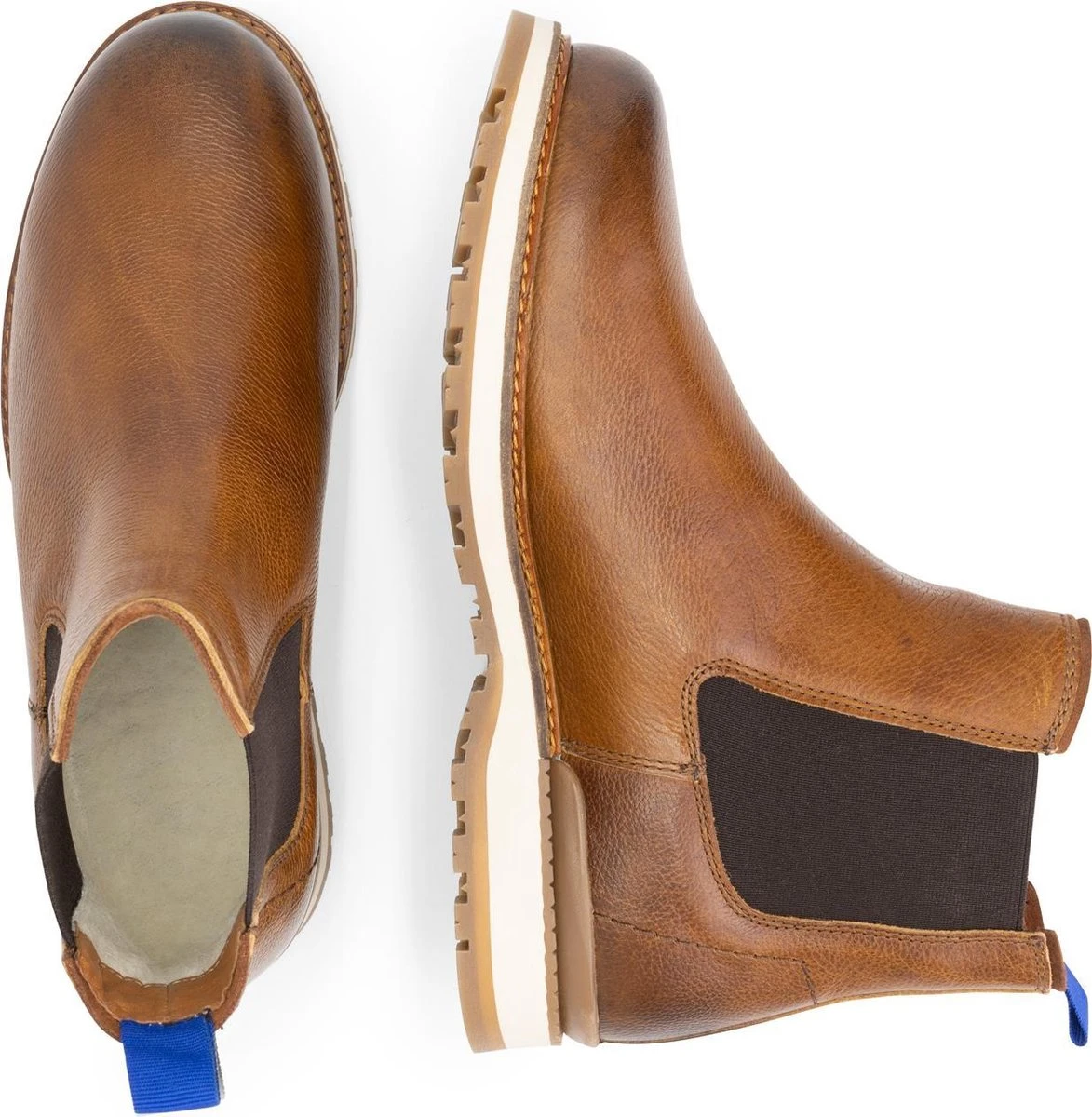 Deze casual Chelsea laars Ravik van Travelin’ is gemaakt van leer en heeft een sportieve witte zool. De binnenzijde is volledig van leer, de buitenzool van natuurrubber. De uitneembare binnenzool is van zacht schuim met een wollen bovenlaag, wat zorgt voor een optimaal comfort. De blauwe lus op de enkel vergemakkelijkt het aantrekken van de laars.